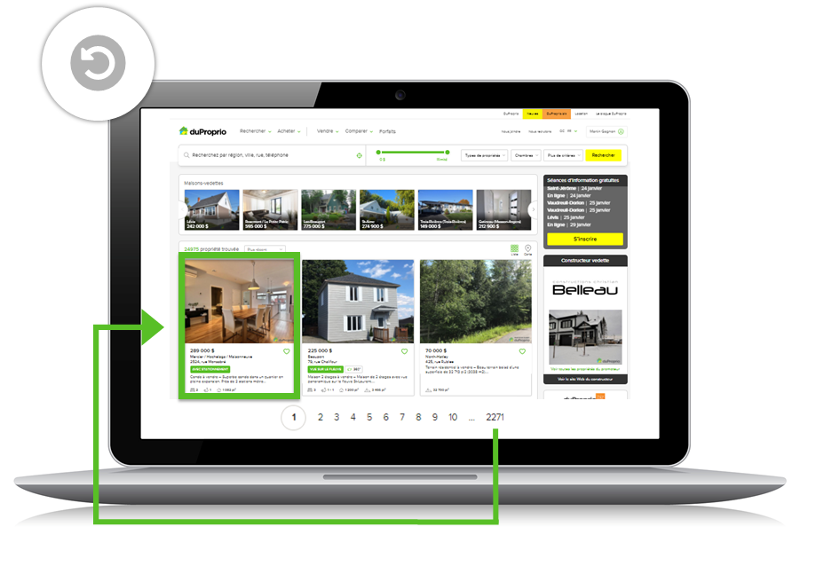 Vous pouvez demander une remise en nouveauté à n’importe quel moment. Votre propriété sera considérée comme une nouvelle propriété, ce qui la placera avantageusement dans les recherches. De plus, une alerte-courriel aux acheteurs recherchant une propriété comme à la vôtre sera déclenchée à nouveau!